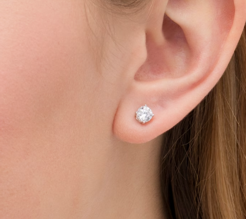 1 CT (tcw). Lab-Grown Diamond Solitaire Stud Earrings in 14K White Gold