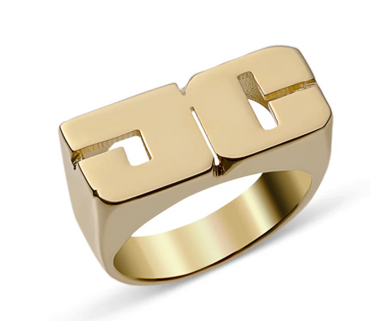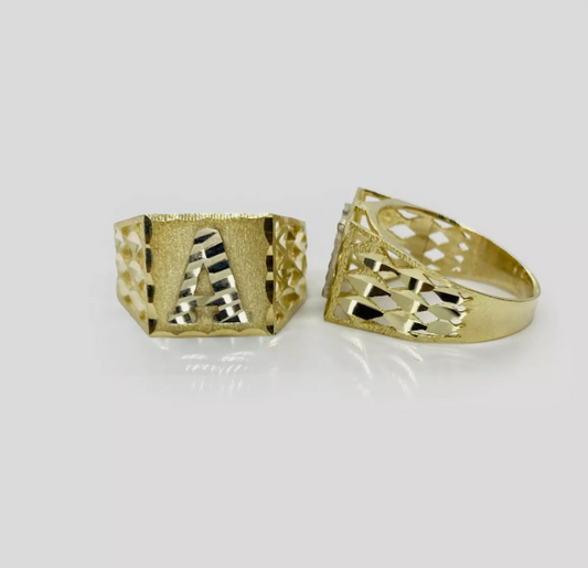10k Solid Gold Diamond Cut Initial Letter Alphabet Monogram Ring for Men