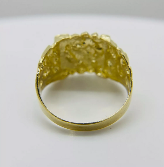 10kt Solid Gold Nugget Square Vintage Style Ring for Men & Women