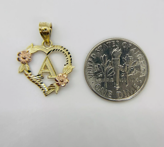 10kt Gold Heart Initial Letter Alphabet Rose Charm Pendant Necklace
