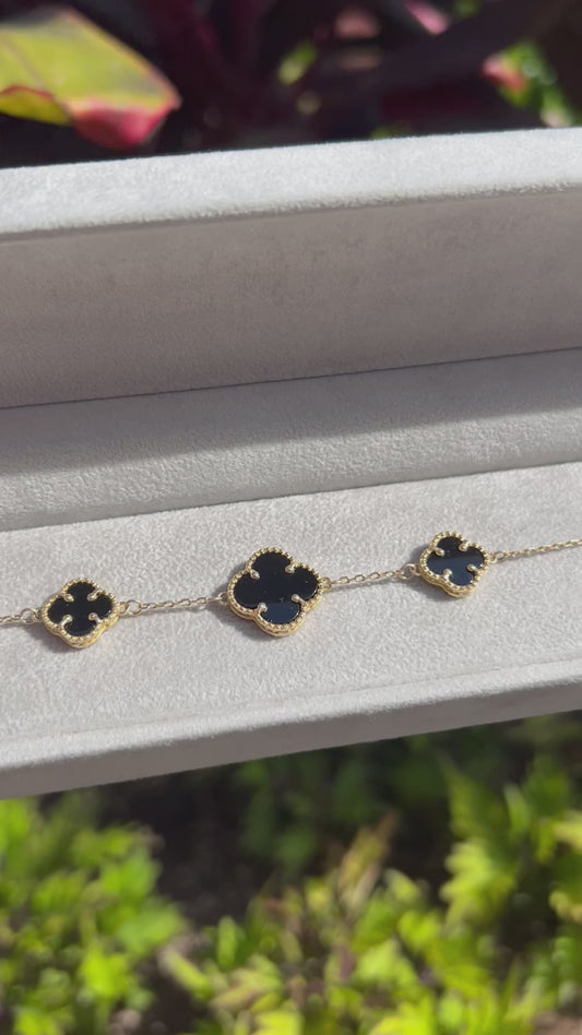 14KT GOLD LUCKY 3-CLOVER BRACELET