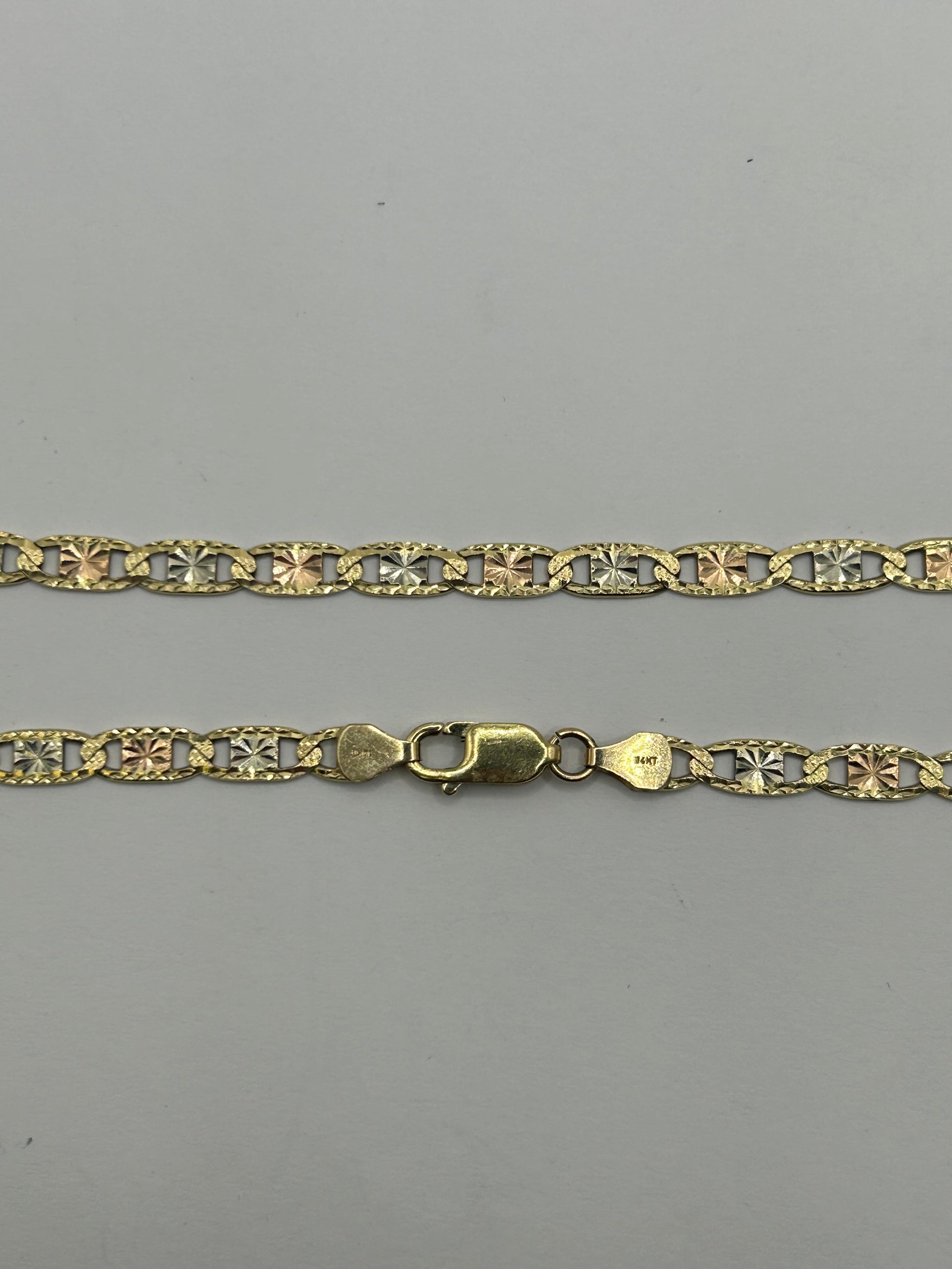 14KT 3-Tone Mariner Link Chain 24inch 5mm