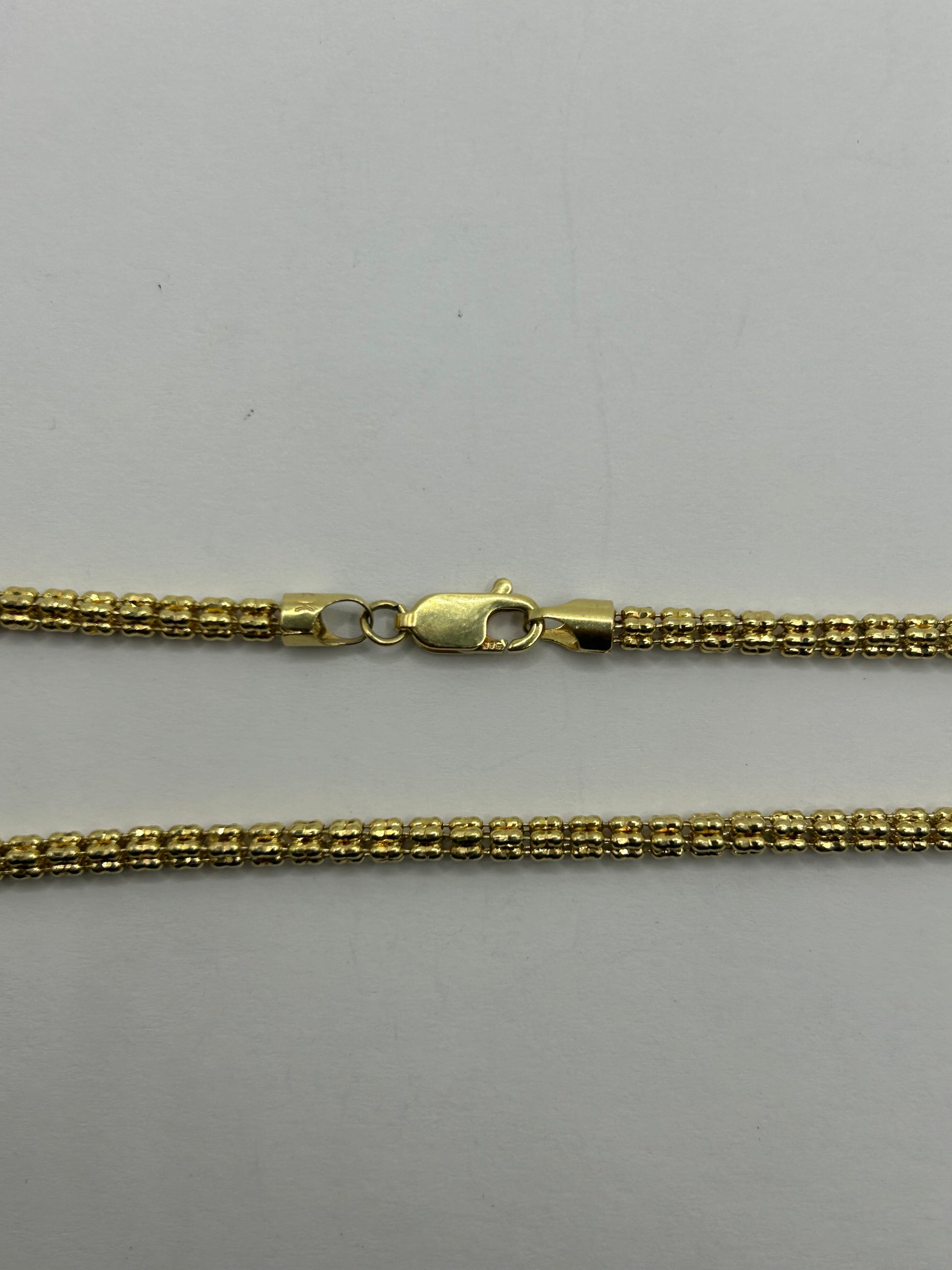 Crafted in 14 karat yellow gold (58.5% purity), this Ice link chain delivers a sleek and modern look. The 3.5mm width provides the perfect balance between boldness and wearability, while the 20-inch length makes it versatile for everyday style or layering with other chains.