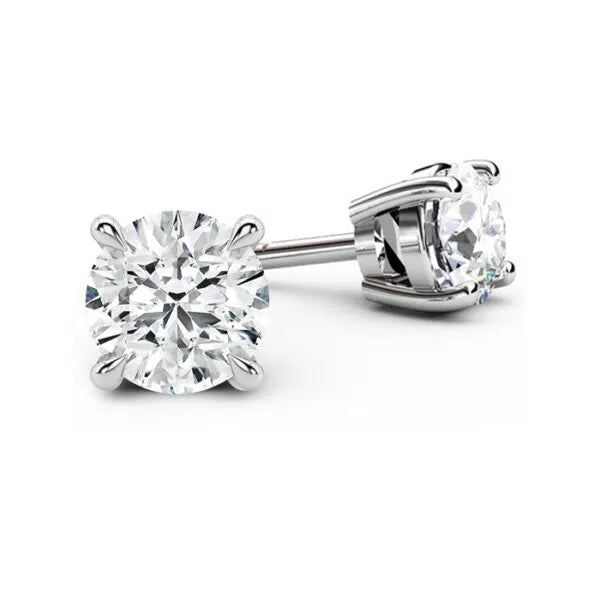 A 1CT carat round lab-created diamond solitaire with a color rank of F and clarity of SI2 is the focal point of each timeless earring.